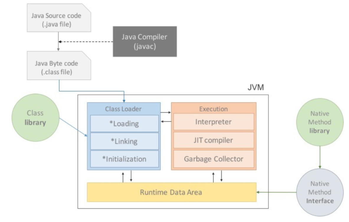 - 자바 소스 코드로 작성된 자바 파일은 Javac라는 Java 컴파일러에 의해 JVM이 해석 할 수 있도록 바이트 코드 형태인 클래스 파일로 변환됨.