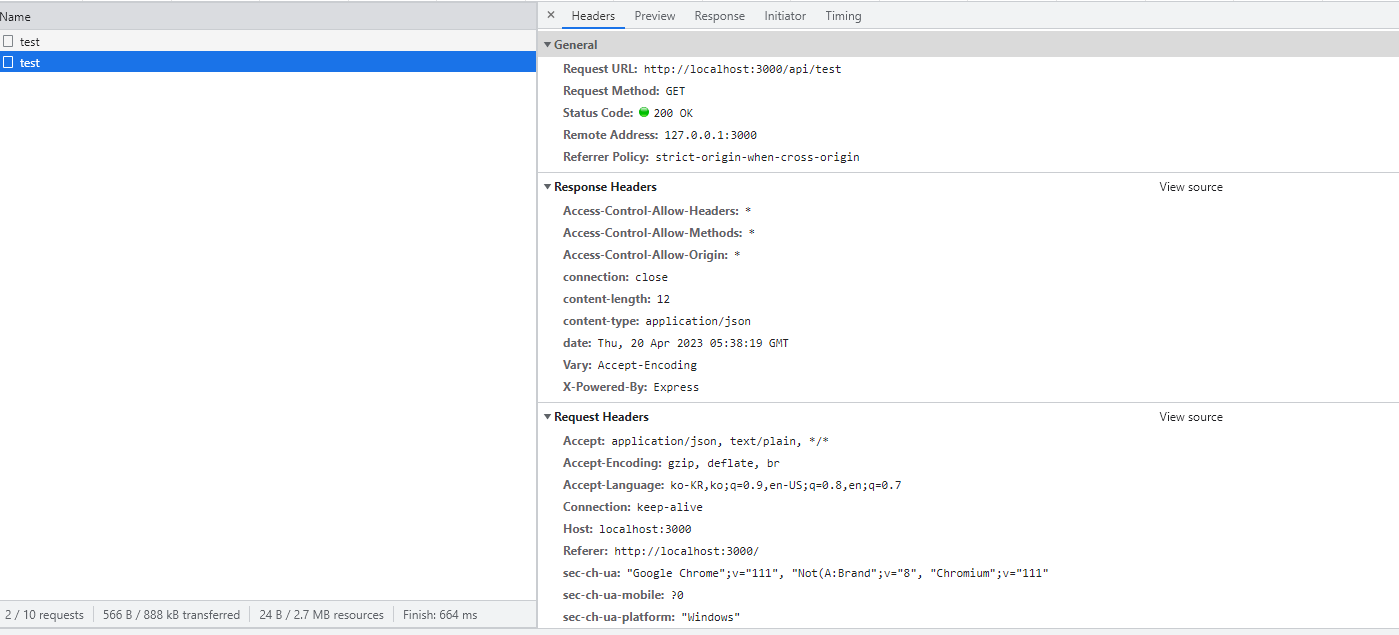 npm 재시작 후 backend 데이터를 가지고 오는지 확인해봤는데 아래와 같이 proxy 설정이 잘 되지 않았습니다 TT